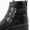3連ベルトがアクセントになった秋冬定番のヒールブーツ。