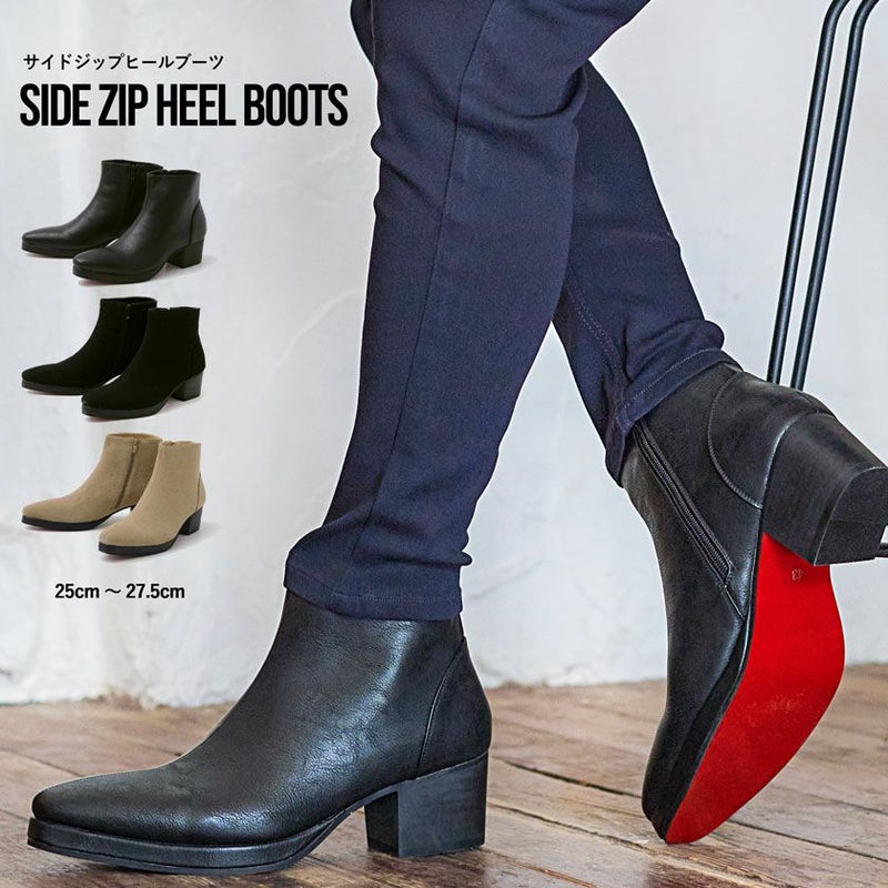 メンズ ブーツ 靴 ブランド 大人 おしゃれ ファッション きれいめ きれい目 きれいめコーデ きれい目コーデ ハイヒール 合成皮革 PUレザー スエード スウェード サイドジップ 美脚 フォーマル ドレス カジュアル キレイめ モード プレゼント 黒 ブラック LOVE HUNTER ラブハンター 父の日 父の日ギフト 東京 プレゼント 贈り物 ギフト 25.0 25.5 26.0 26.5 27.0 27.5