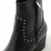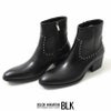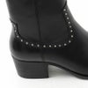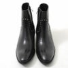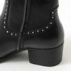 ロングノーズのシャープなフォルムに、スタッズをあしらったクールな存在感のあるハイヒールブーツ。