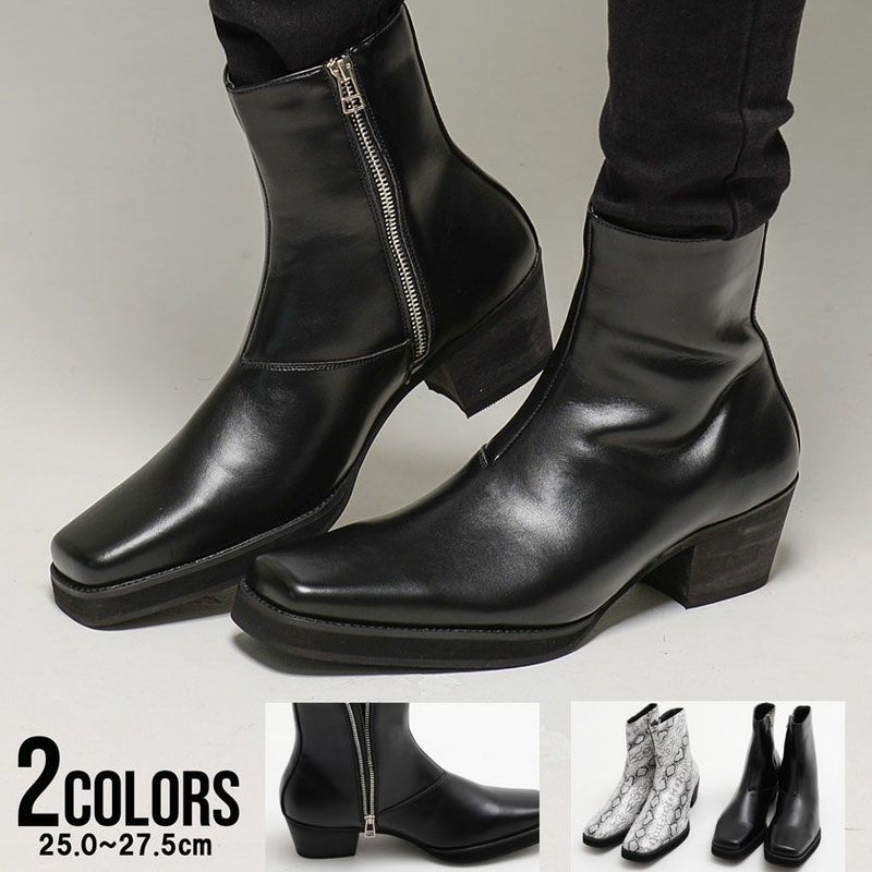 ブーツ メンズ 靴 くつ シューズ ショートブーツ ヒールブーツ ブーティ ブーティー サイドジップ スクエアトゥ 6cmヒール 美脚 脚長効果 PUレザー 合成皮革 合皮 無地 シンプル 定番 ベーシック おしゃれ ユニセックス レディース ブラック パイソン 黒 25cm 25.5cm 26cm 26.5cm 27cm 27.5cm 大人 カジュアル きれいめ ドレス 上品 モード ストリート ストリート系 ストリートファッション 韓国 韓国系 韓国ファッション 春 夏 秋 冬 男性 男 父の日 父の日ギフト 父の日プレゼント 20代 30代 40代 メンズファッション 東京 プレゼント 誕生日 記念日 贈り物 ギフト