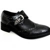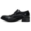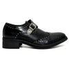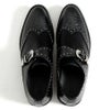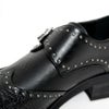つま先にクロコ切り替えを施したスタッズ付きモンクストラップシューズ。