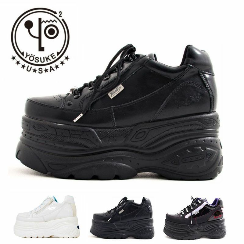 ヨースケ YOSUKE スニーカー 厚底 靴 シューズ 地雷系 サイバー系 サブカル系 ヴィジュアル系 V系 Visualkei メンズ ファッション ゴシック パンク ゴス モード系 厚底 スニーカー ブラック ホワイト 黒 白