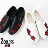薔薇刺繍ワッペンがインパクト抜群のスリッポン。