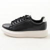 PUレザーを使用したレースアップスニーカー。