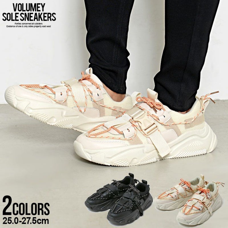 スニーカー メンズ 厚底 ダッドスニーカー ボリュームソール ベージュ ブラック 黒 靴 シューズ 韓国 韓国系 BITTER系 ビター系 カジュアル ストリート 秋 冬 2021