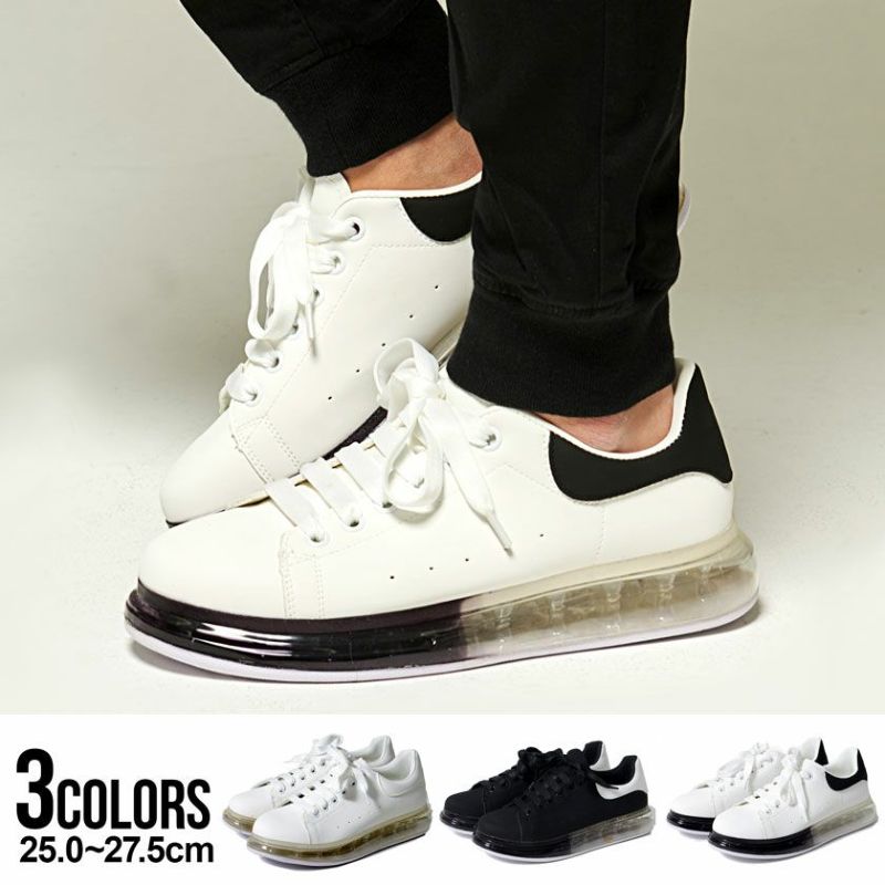 スニーカー メンズ 白 黒 靴 シューズ おしゃれ 厚底 エアー カジュアル ストリート系 スポーティー スポーツ ローカット 25.0 25.5 26.0 26.5 27.0 27.5