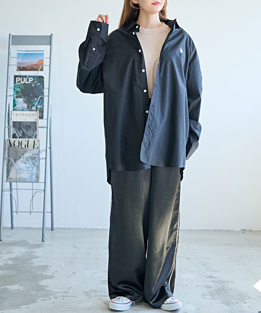 CavariA【キャバリア】日本製スキッパーデザインルーズシルエット7分袖シャツ/全3色