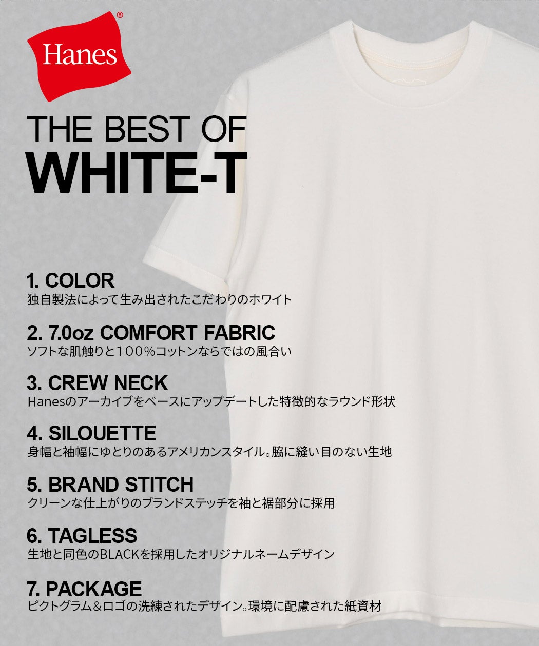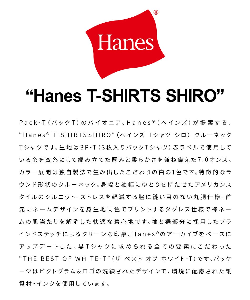 Hanes【ヘインズ】1P Hanes T-SHIRTS SHIRO クルーネックTシャツ/全1色