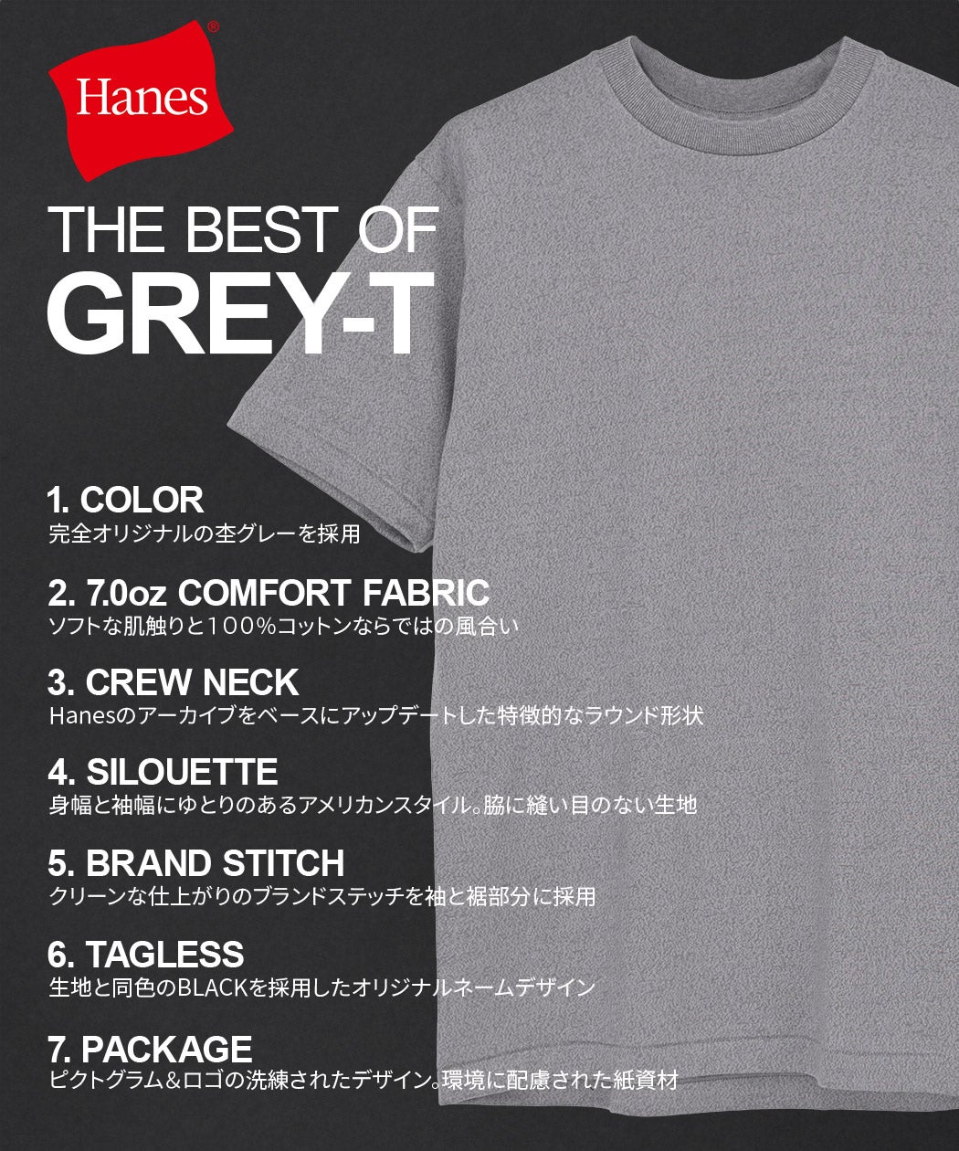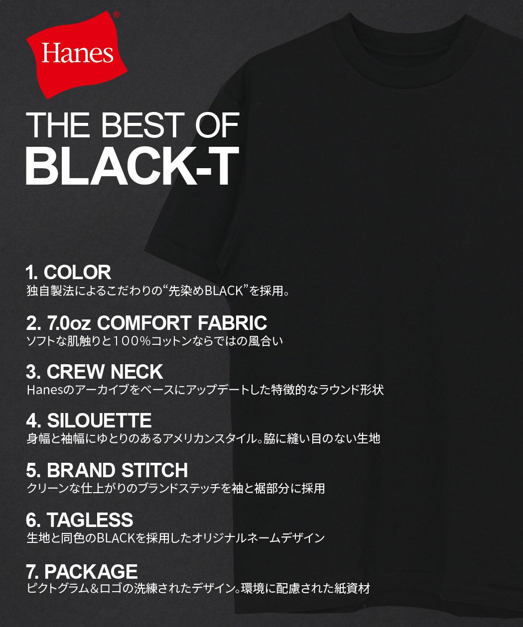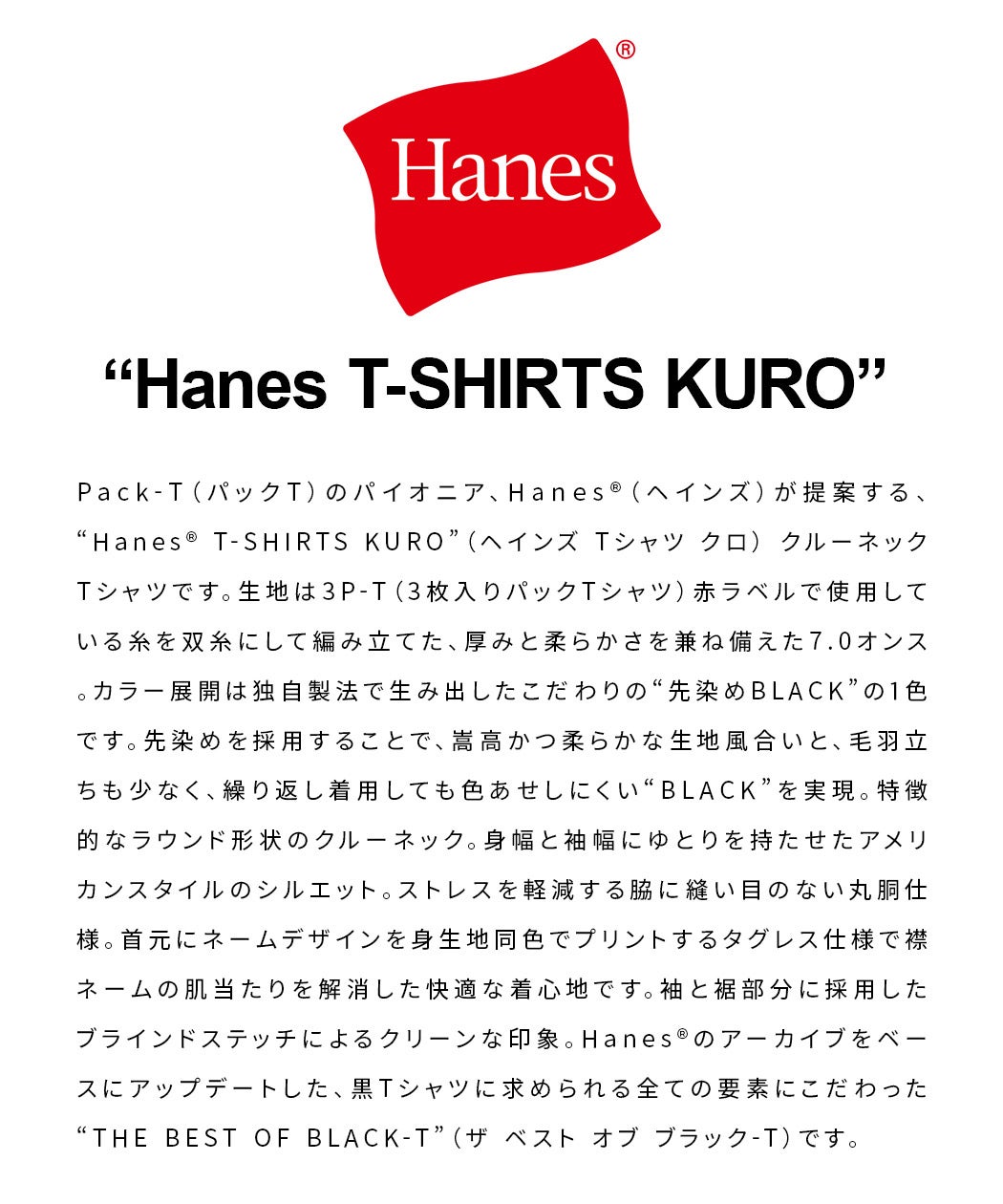 Hanes【ヘインズ】1P Hanes T-SHIRTS KURO クルーネックTシャツ/全1色