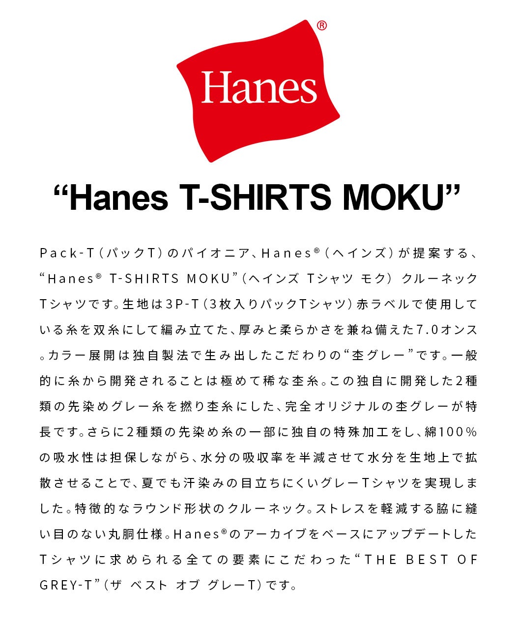 Hanes【ヘインズ】1P Hanes T-SHIRTS MOKU クルーネックTシャツ/全1色