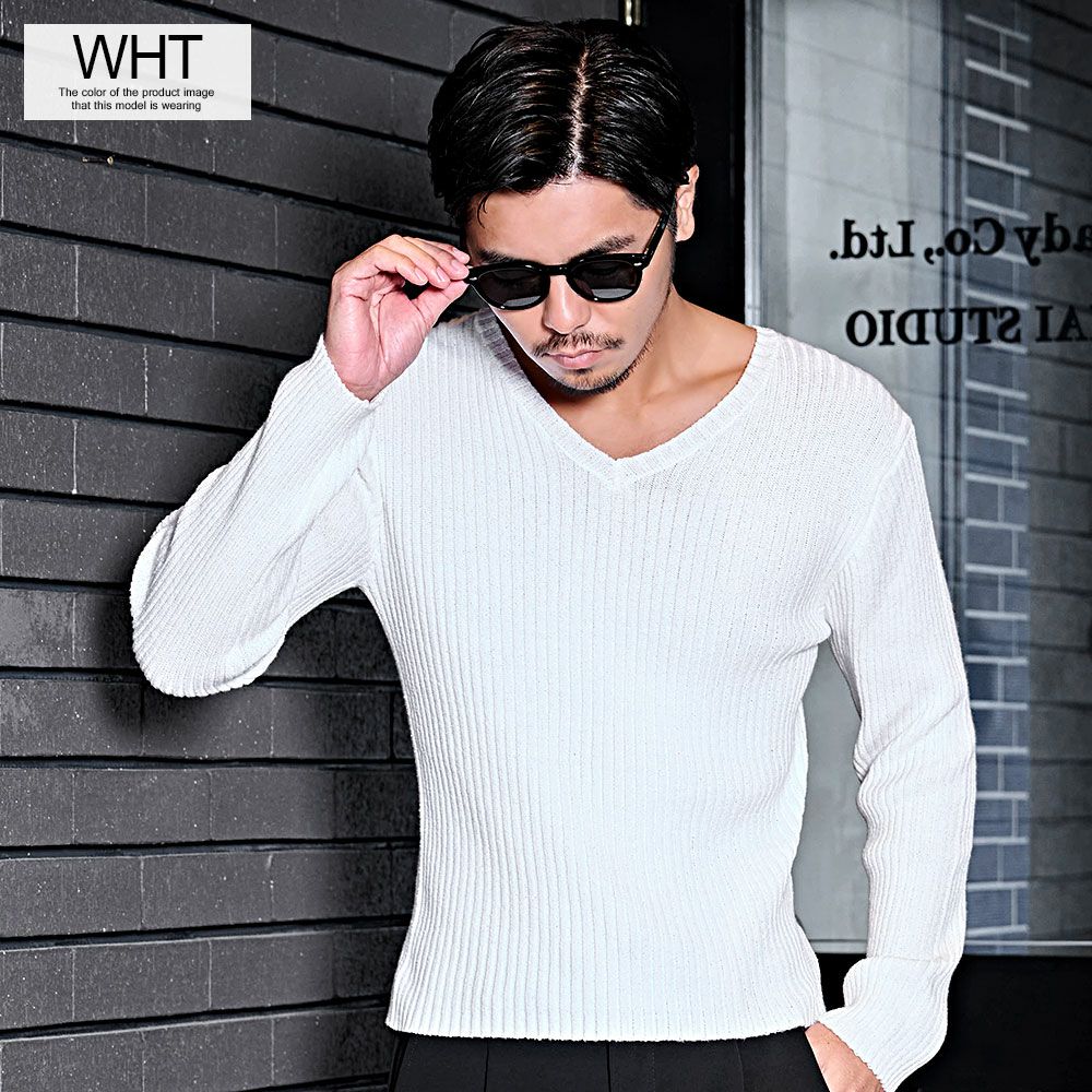 CavariA【キャバリア】ストレッチジャガード半袖VネックTシャツ/全3色