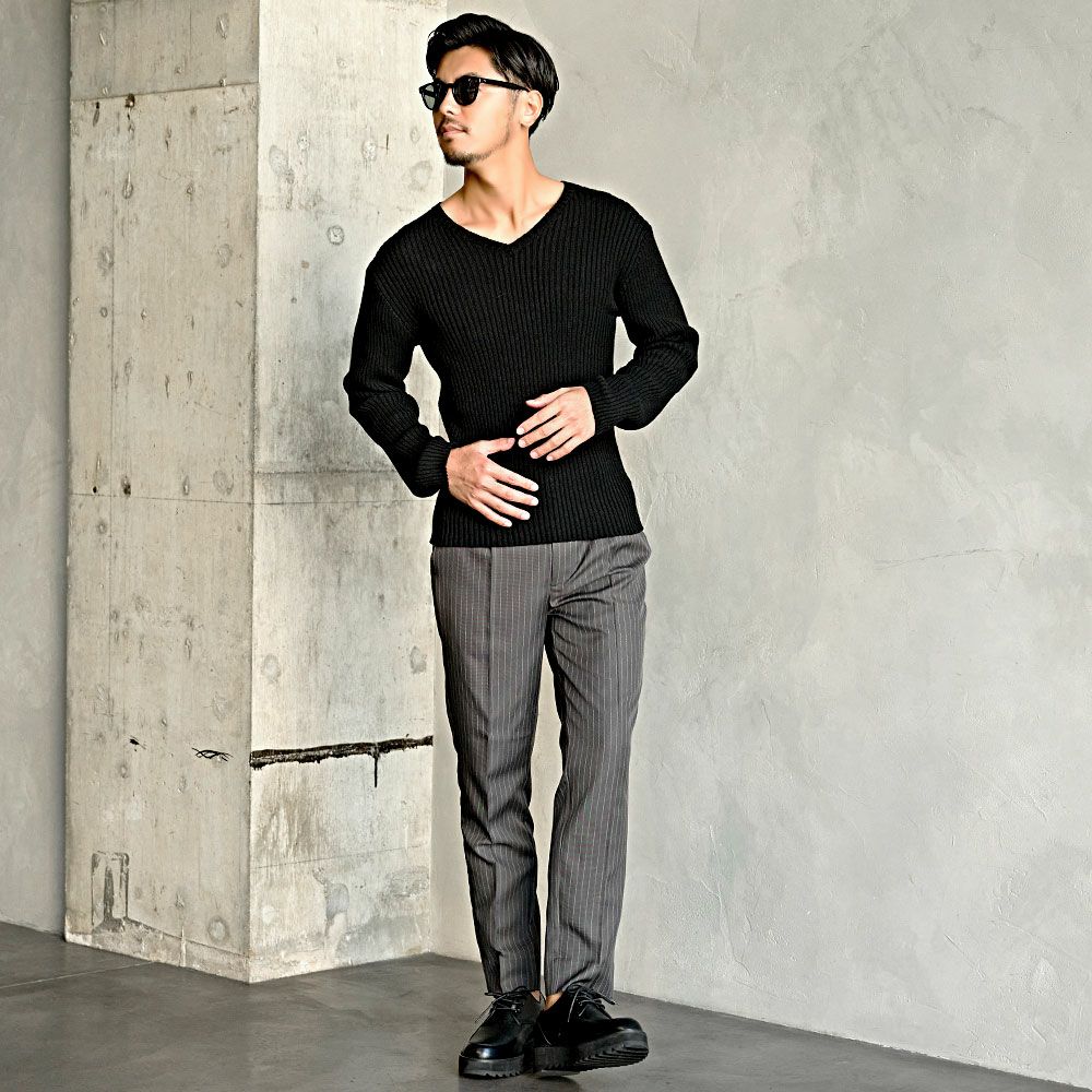 CavariA【キャバリア】ジグザグストライプ半袖VネックTシャツ/全3色