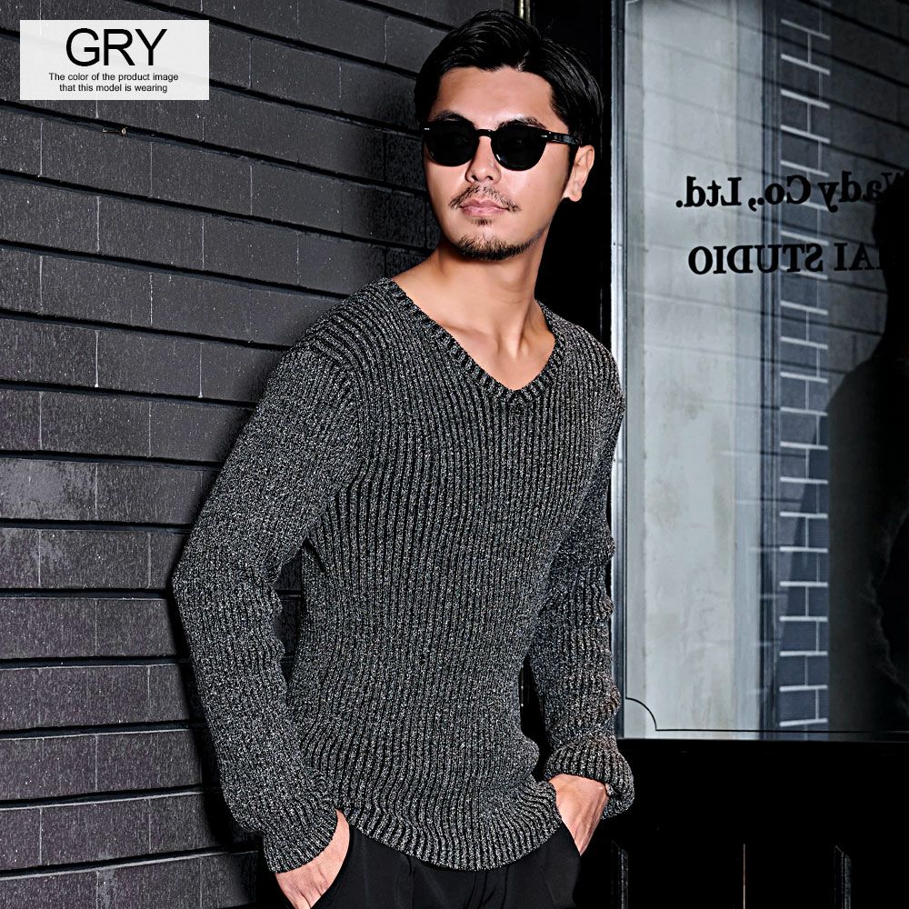 CavariA【キャバリア】汚し加工格子ケーブル半袖VネックTEE/全3色
