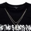 ダブルチェーンのクロスネックレスを付属したグラフィックTシャツです。