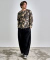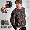 ワッフル生地を採用した、存在感のある迷彩柄長袖Tシャツ。