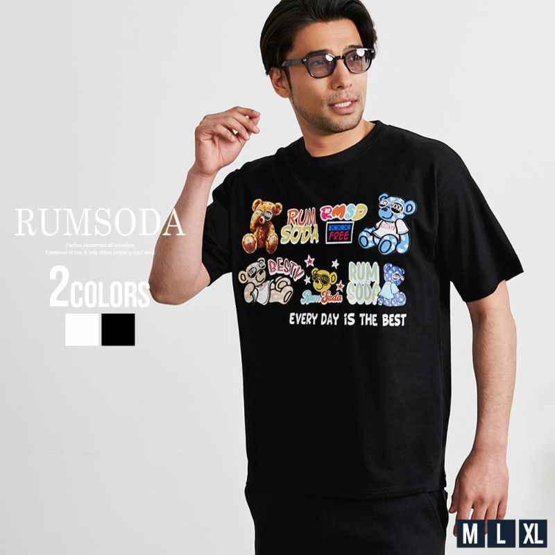 Tシャツ メンズ 半袖 ブランド おしゃれ 大きいサイズ 白T 白Tシャツ トップス カットソー インナー クルーネック ベア クマ くま ワッペン アップリケ 刺繍 ロゴ プリント 天竺 綿100% コットン ビッグシルエット オーバーサイズ ゆったり ストレッチ 伸縮性 ホワイト ブラック 白 黒 M L XL RUMSODA ラムソーダ 大人 カジュアル ストリート ストリート系 韓国 韓国系 韓国ファッション 下北沢 下北系 古着 古着系 90s 90年代 2000年代 Y2K ユニセックス レディース 男女兼用 ペア 服 春 夏 春服 夏服 男性 男 父の日 父の日ギフト 父の日プレゼント 20代 30代 40代 ファッション メンズファッション 東京 プレゼント 誕生日 記念日 贈り物 ギフト