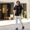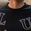フロントから左肩にかけて、オリジナルロゴをラインストーンで施した存在感のあるTシャツ。