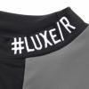 首周りにデザインしたロゴが目を惹くモックネック仕様。