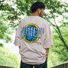 フロントにワンポイントとバック全面にサガラ刺繍をあしらったインパクト抜群の半袖Tシャツ。