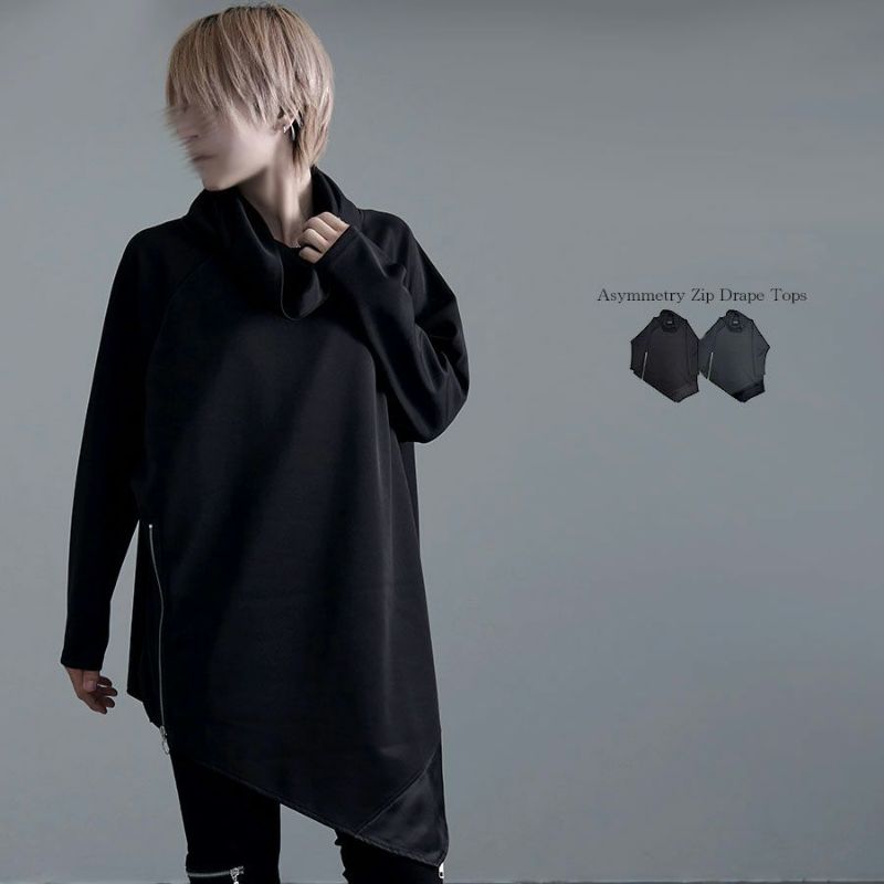 変形アシンメトリーデザインのZIPデザイン付きオフタートルカットソー。です。