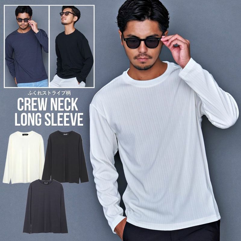 Tシャツ メンズ 長袖Tシャツ ロンT ストライプ トップス カットソー クルーネック 伸縮 M L 白T 白Tシャツ ホワイト ブラック チャコール 黒 CavariA 大人メンズファッション 男性 男 服 春 夏 秋 冬 メンズファッション 20代 30代 40代 父の日 東京 プレゼント 誕生日 記念日 贈り物 ギフト