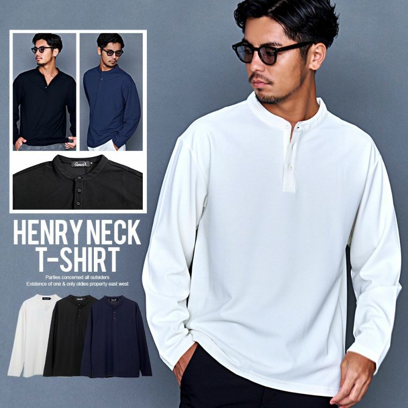 Tシャツ メンズ 長袖 長袖Tシャツ ロンT おしゃれ ヘンリーネック 無地 ワッフル サーマル