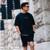 サイドジップが付いたTシャツはデザイン性と動きやすさを兼ね備え、細身のショーツはブランドラバーロゴと刺繍のみのシンプルデザイン。