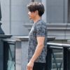 表面にモザイクチェック柄を施した生地感が上品で贅沢な雰囲気を演出する半袖Tシャツ。