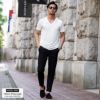 程よく開いたVネックはすっきりとした色気のある首元に魅せてくれます。