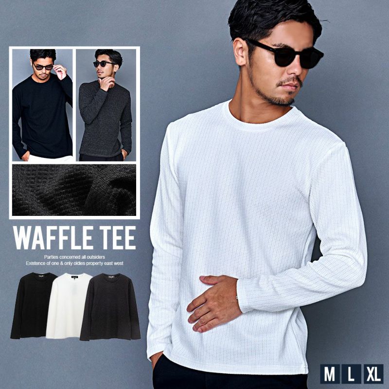 表面に凹凸のある織り目が特徴のワッフル素材を使用したロンT。