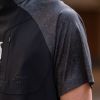 配色パターンがスタイリッシュな半袖モックネックTシャツ。