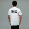 肩にワンポイントとバックに大きくロゴをプリントしたインパクト抜群な半袖Tシャツ。