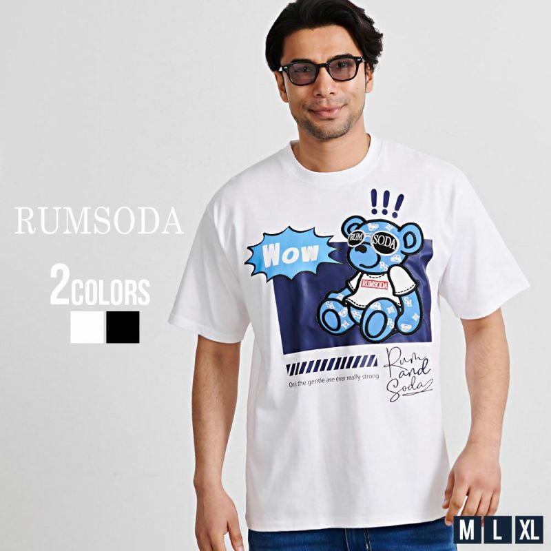 Tシャツ メンズ 半袖 カットソー ブランド おしゃれ プリント 刺繍 ベア くま ロゴ 白T 白Tシャツ ホワイト ブラック 黒 白 綿100% コットン M L XL RUMSODA ラムソーダ 20代 30代 40代 ユニセックス 男性 男 服 春 夏 春冬 夏服 ファッション 東京 プレゼント 誕生日 記念日 贈り物 ギフト