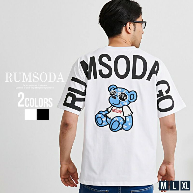 Tシャツ メンズ 半袖 カットソー ブランド おしゃれ プリント バックプリント 刺繍 ベア くま ロゴ 白T 白Tシャツ ホワイト ブラック 黒 白 綿100% コットン M L XL RUMSODA ラムソーダ 20代 30代 40代 ユニセックス 男性 男 服 春 夏 春冬 夏服 ファッション 東京 プレゼント 誕生日 記念日 贈り物 ギフト