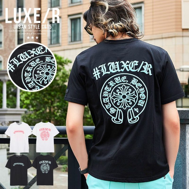 Tシャツ メンズ 半袖 半袖Tシャツ ブランド おしゃれ 大きいサイズ 白T 白Tシャツ トップス カットソー インナー クルーネック 綿100% コットン 天竺 オールドイングリッシュ サークルロゴ クロス 十字架 刺繍 細身 スリム タイト フィット ストレッチ 伸縮性 ホワイト ブラック 白 黒 M L XL LUXE/R ラグジュ 大人 スポーツ カジュアル ストリート ストリート系 韓国 韓国系 韓国ファッション 下北沢 下北系 古着 古着系 90s 90年代 2000年代 Y2K ユニセックス レディース 男女兼用 ペア 服 春 夏 春服 夏服 男性 男 父の日 父の日ギフト 父の日プレゼント 20代 30代 40代 ファッション メンズファッション 東京 プレゼント 誕生日 記念日 贈り物 ギフト
