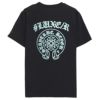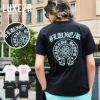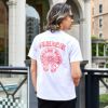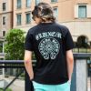 フロントとバックに施されたオールドイングリッシュ調の立体刺繍がインパクト抜群の半袖Tシャツ。