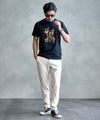 シンプルなTシャツながらもコーディネートの主役として活躍し、スタイリングにさりげない個性をプラスしてくれる一枚です。