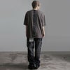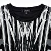 前面に大きなプリントを施し中央に刺繍を加え、バックにはテープとD缶をつけたロックな雰囲気のデザイン。
