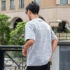 ブロークンストライプ柄が印象的な、クルーネック半袖Tシャツ。