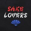 フロント両胸にはさりげない存在感がある「愛酒家」刺繍ロゴと「SAKE LOVERS」のプリントロゴデザインがクール。