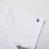 襟の内側にChampion(チャンピオン)ロゴ入りのテープを貼って襟ぐりの補強をすると同時に、デザインにアクセントを添えています。