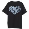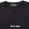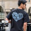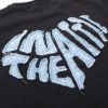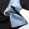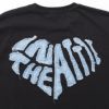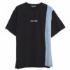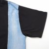 フロントはデニム生地で切り替え、バックはハート型ロゴパッチワークをデザインした半袖Tシャツ。