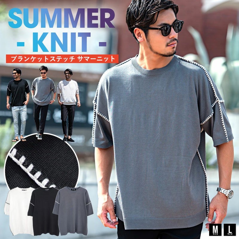 サマーニット ニット セーター 半袖ニット Tシャツ メンズ おしゃれ 半袖 半袖Tシャツ プリント ストレッチ 伸縮性 シンプル 無地 クルーネック ブランケットステッチ かがり縫い ブラインドステッチ 大きいサイズ オーバーサイズ ビッグシルエット ドロップショルダー ゆったり 服 男 男性 ユニセックス ブラック くろ ホワイト 白 白T 白Tシャツ トップス 春服 夏服 春夏 秋 大人 カジュアル ファッション おしゃれ 春 夏 秋 冬 ストリート ストリート系 ストリートファッション 下北沢 下北系 古着 古着系 90s 90年代 2000年代 Y2K 男性 男 父の日 父の日ギフト 父の日プレゼント 20代 30代 40代 メンズファッション 東京 プレゼント 誕生日 記念日 贈り物 ギフト