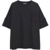 袖と胸ポケットの切り替えデザインがアクセントになった、上品さとラフさを兼ね備えたドルマンTシャツ。