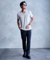 一枚で着てもサマになるのはもちろん、ジャケットやシャツのインナーとしてもバランス良く合わせられる万能なデザインです。