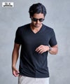 CavariA【キャバリア】ストレッチジャガード半袖VネックTシャツ/全3色