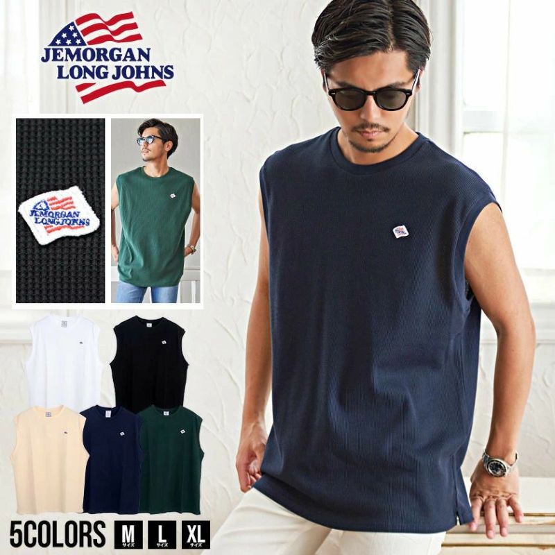 ノースリーブ Tシャツ メンズ ブランド おしゃれ 大きいサイズ フレンチスリーブ タンクトップ トップス カットソー クルーネック ワッフル 涼しい ゆったり 無地 シンプル レディース ブラック ホワイト ベージュ グリーン ネイビー 黒 白 M L 大人 カジュアル ストリート ストリート系 ストリートファッション JEMORGAN LONG JOHNS ジェーイーモーガンロングジョーンズ 服 春 夏 春服 夏服 男性 男 父の日 父の日ギフト 父の日プレゼント 20代 30代 40代 ファッション メンズファッション