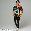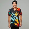 タイダイのようなグラデーションの総柄デザインがインパクト抜群のカジュアルシャツ。