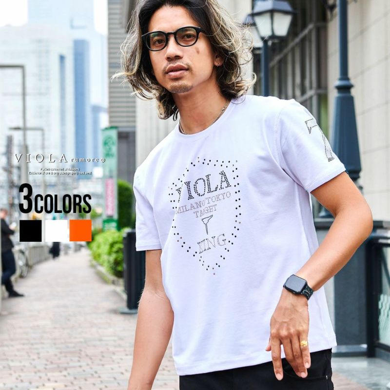 Tシャツメンズ 半袖Tシャツ クルーネック ラインストーン ブランド おしゃれ ロゴ トップス カットソー 伸縮 M L XL 白T 白Tシャツ ホワイト ブラック オレンジ 黒 ラグジュアリー ストリート きれいめ 細身 タイト ミラノ イタリア ヴィオラ VIOLA 父の日 20代 30代 40代 服 春 夏 春服 夏服 男 男性 ファッション メンズファッション 東京 プレゼント 誕生日 記念日 贈り物 ギフト