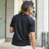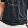 フロントと左袖にラインストーンでデザインをあしらったインパクト抜群の半袖Tシャツ。